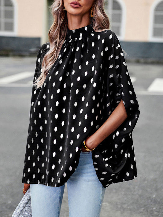 New Price Drop!Chic Bat Sleeve Blouse - Women's Loose Polka Dot High Neck Top