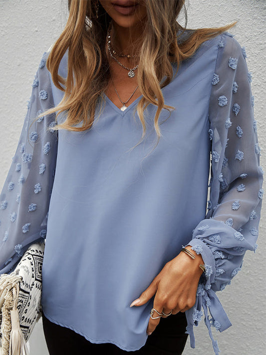 New Price Drop!Long Sleeves V-Neck Blouse | Swiss Dot Accents Top