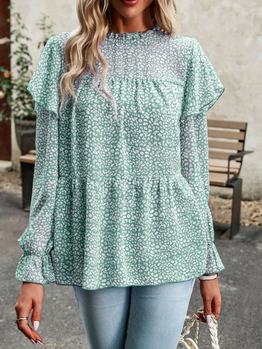 New Price Drop!Animal Print Lantern Sleeve Blouse with Ruffle & Shirred Accents
