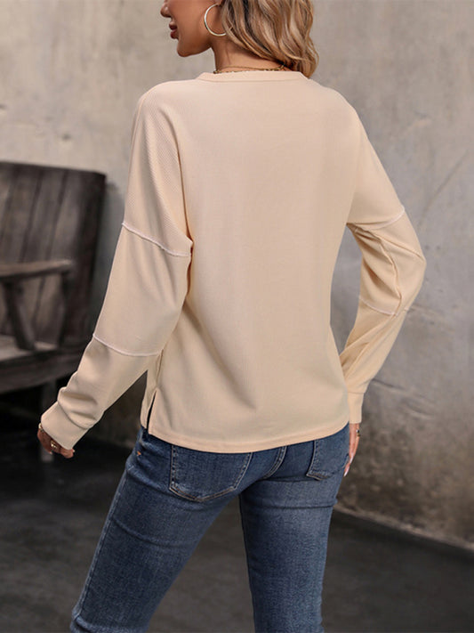 New Price Drop!Casual Textured Half-Button Crew Neck Sweater Top