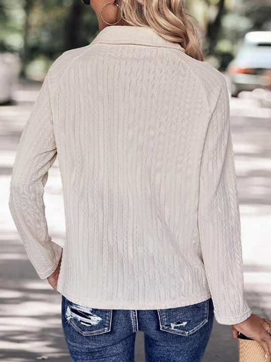 New Price Drop!Office Textured Knit Half-Button Collar Sweater Top