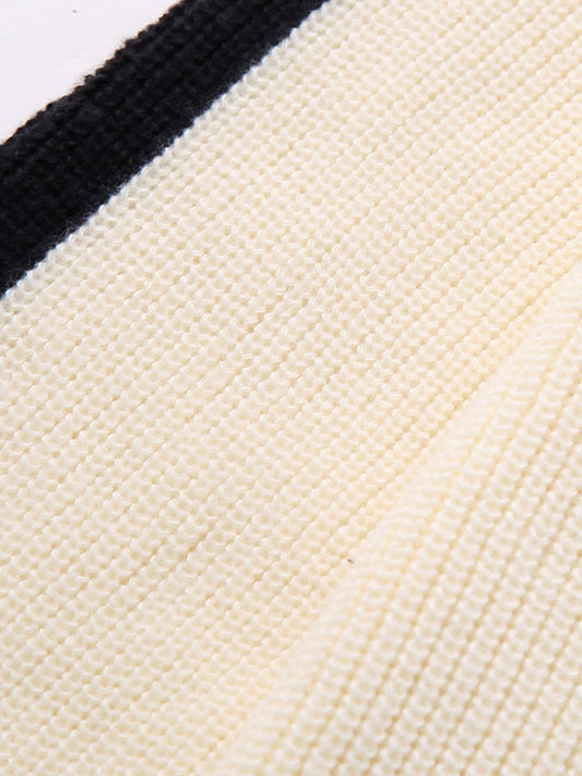 New Price Drop!Stripe Knitted Patched Seams Turn-Down Collar Oversized Sweater