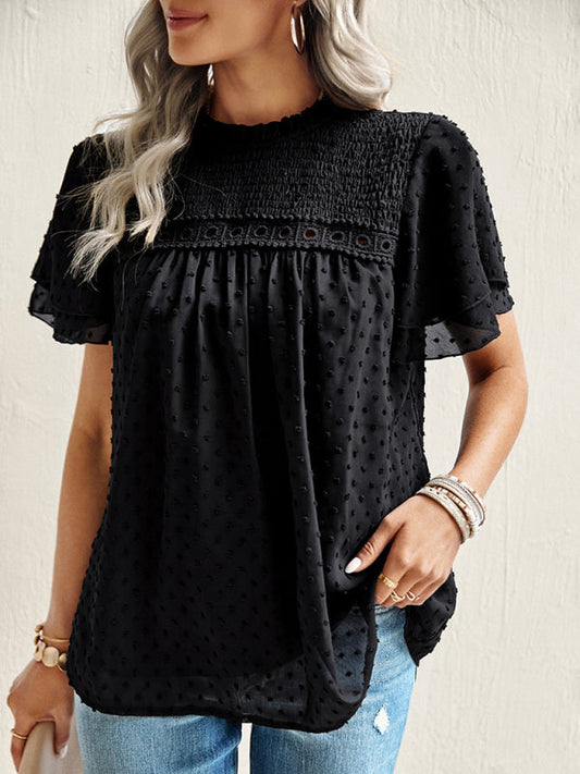 Swiss Dot Jacquard Blouse | Stand Collar & Layered Short Sleeves TopRegular price $23.69 USDRegular priceUnit price / per$30.22 USDSale price $23.69 USDNew Price Drop!