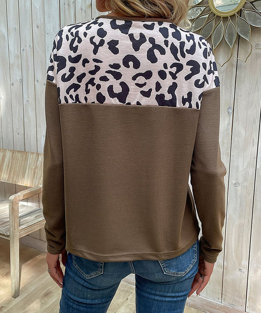 Women's Colorblock Sweater with Leopard Print Trim & Button Accents!Regular price $19.90 USDRegular priceUnit price / per$26.58 USDSale price $19.90 USDNew Price Drop!