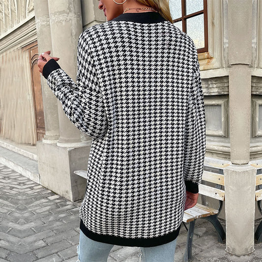 Houndstooth Button Down Cardigan: Loose Fit, Drop Shoulders, PocketsRegular price $26.90 USDRegular priceUnit price / per$39.65 USDSale price $26.90 USDNew Price Drop!