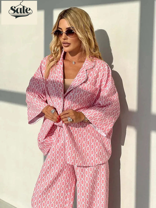 Geometric Print Loungewear Notched Lapel Shirt & PantsRegular price $37.90 USDRegular priceUnit price / per$55.28 USDSale price $37.90 USDSold out