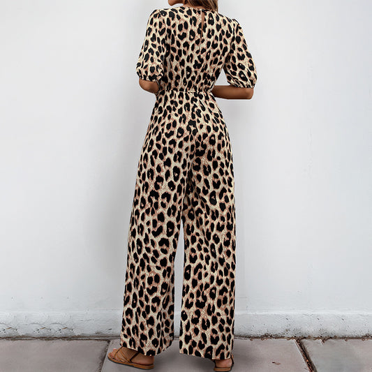 European And American Jumpsuit Tied High Waist Leopard Print One-piece TrousersRegular price $23.90 USDRegular priceUnit price / per-