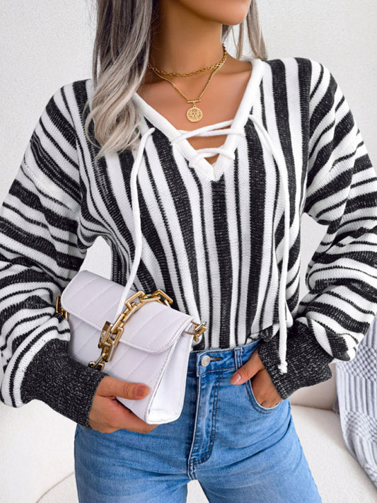 New Price Drop! New Price Drop!Knitted Stripe V-Neck Drawstring Tie SweaterRegular price $21.69 USDRegular priceUnit price / per$32.90 USDSale price $21.69 USDNew Price Drop!