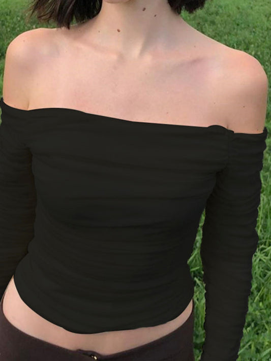 Off-The-Shoulder Long Sleeve Crop Top in Ruched MeshRegular price $18.95 USDRegular priceUnit price / per$25.30 USDSale price $18.95 USDSold out
