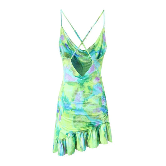 Abstract Green Print Mini Dress with Cowl Neck - Perfect for PartiesRegular price $26.90 USDRegular priceUnit price / per$52.54 USDSale price $26.90 USDNew Price Drop!