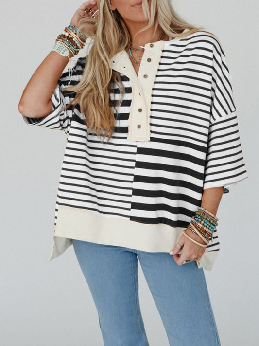 New Price Drop! New Price Drop!Oversized High-Low & Bold Stripes Half Button Up Pullover TopRegular price $23.79 USDRegular priceUnit price / per$33.99 USDSale price $23.79 USDNew Price Drop!