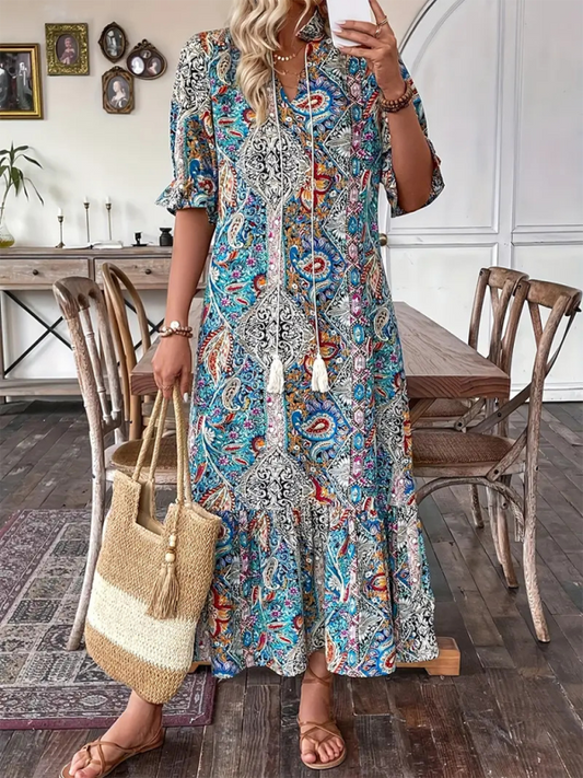Casual Boho Paisley V-Neck Dress with Elbow Sleeves for Family GatheringsRegular price $24.90 USDRegular priceUnit price / per$31.88 USDSale price $24.90 USDNew Price Drop!