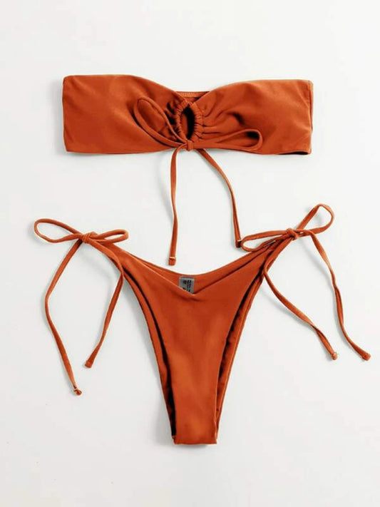 Adjustable 2 Piece Swimwear | Bandeau Halter Bra & High Cut Ruched BikiniRegular price $18.95 USDRegular priceUnit price / per$25.78 USDSale price $18.95 USDNew Price Drop!
