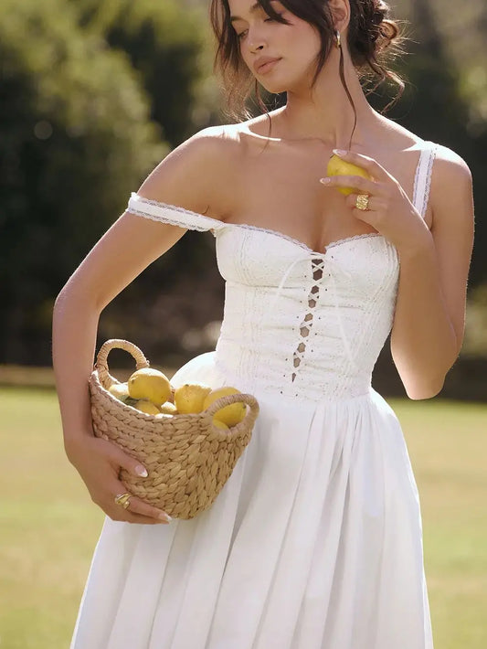 Romantic Button-Up Embroidered Off Shoulder Summer Dress in CottonRegular price $36.90 USDRegular priceUnit price / per$52.29 USDSale price $36.90 USDNew Price Drop!