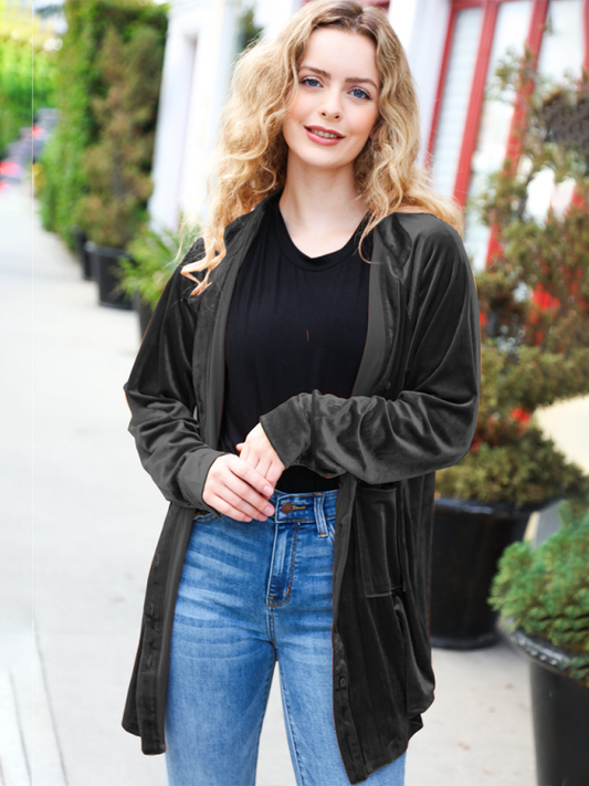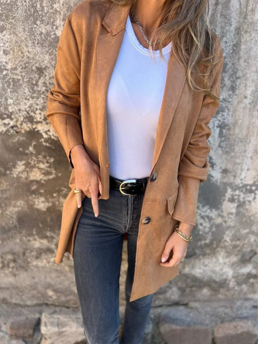 Lässige Mode Wildleder Revers Langarm Lange Jacke