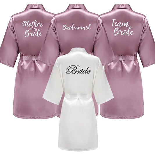Maßgeschneiderter Hochzeitsmantel aus rosa Satin – Braut und Team Edition