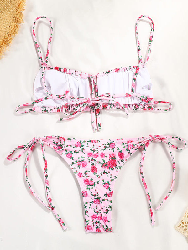 Geblümte 2-teilige Träger-Bademode – quadratischer BH und seitlich gebundener Bikini