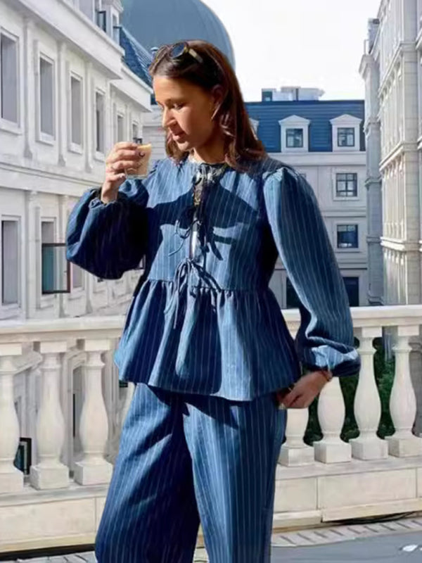 Elevate your casual look with our Women's Stripe Tie Lace-Up Blouse featuring Puff Long Sleeves. Crafted from a blend of polyester and cotton, this blouse offers a comfortable regular fit with a stylish crew neck and stripe pattern. The tie lace-up detail adds a touch of elegance, making it suitable for various occasions including weekend gatherings, shopping trips, social events, and everyday wear during the spring and summer seasons. Refer to our size charts to find your perfect fit, keeping in mind the normal measurement error. Don't miss out on adding this versatile and chic blouse to your wardrobe! 💖