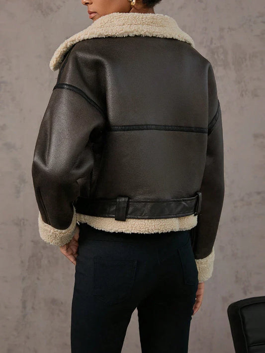 Women Shearling-Lined Biker Jacket – Outerwear for Fall and Winter