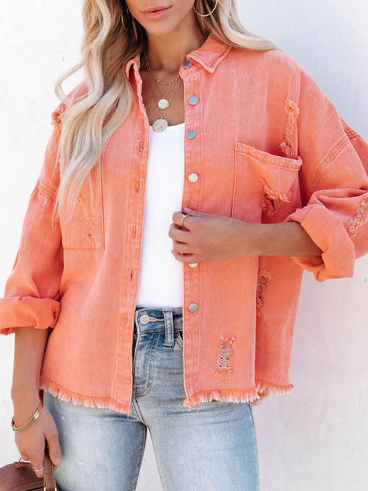 Distressed Frayed Denim Shacket - Fall & Winter Chic