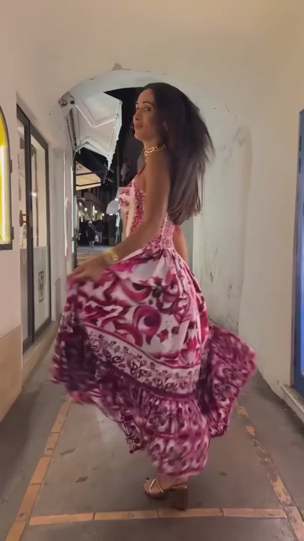 Indulge in Vintage Charm with our 🍒 Vintage Cherry Print Fit and Flare Cami Maxi Dress, perfect for your romantic getaways and sunny escapades.