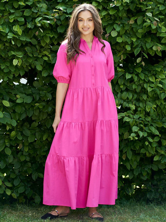 V-Neck Maxi Dress with Loose Fit and Tiered Design
