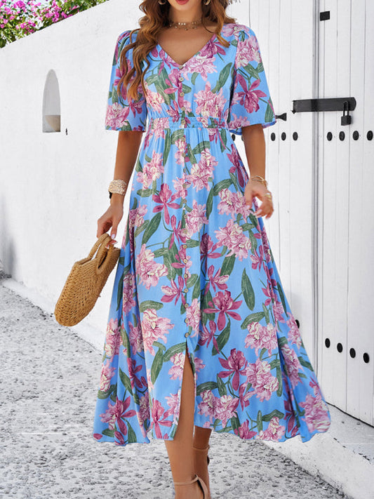 Robe mi-longue à imprimé floral d'été pour les événements de jour