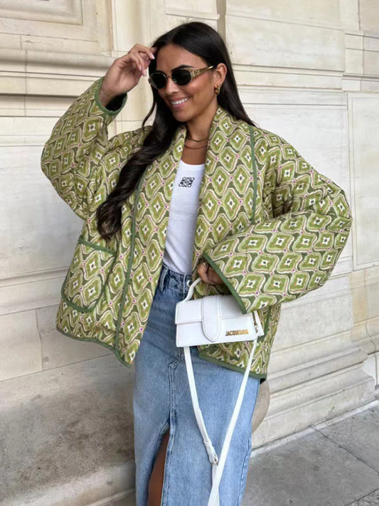 Veste matelassée à col châle et imprimé abstrait d'hiver douillet