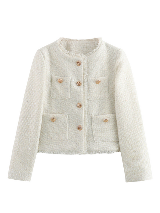 Trendy Cropped Bouclé Jacket - Textured Chic