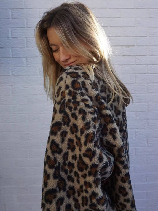 Women's Zip-Up Leopard Print Mid Quilted Jacket