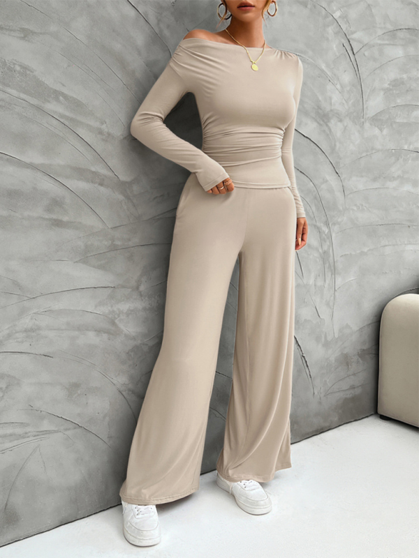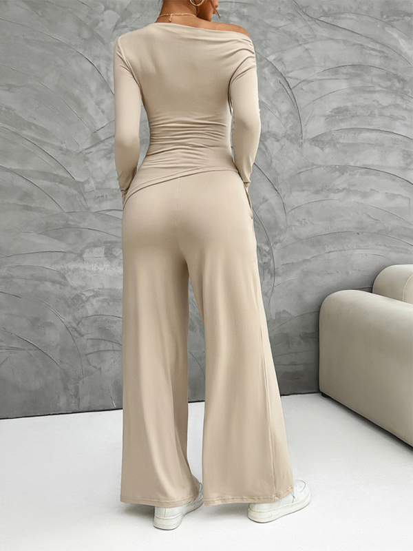 Asymmetry Women's Wide-Leg Pants Set with Long Sleeve Top
