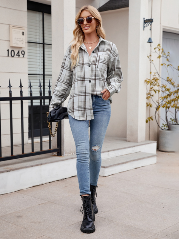 This plaid long sleeve flannel shirt is your perfect companion for a cozy autumn. With its classic collared neckline and relaxed fit, it offers both comfort and style. Made from polyester flannel without elasticity, it’s ideal for cooler spring days and crisp fall evenings. Whether you're heading out for casual gatherings, shopping trips, or enjoying a leisurely weekend brunch, this shirt promises effortless chic and warmth. Embrace the season in style with this versatile and comfortable wardrobe staple!