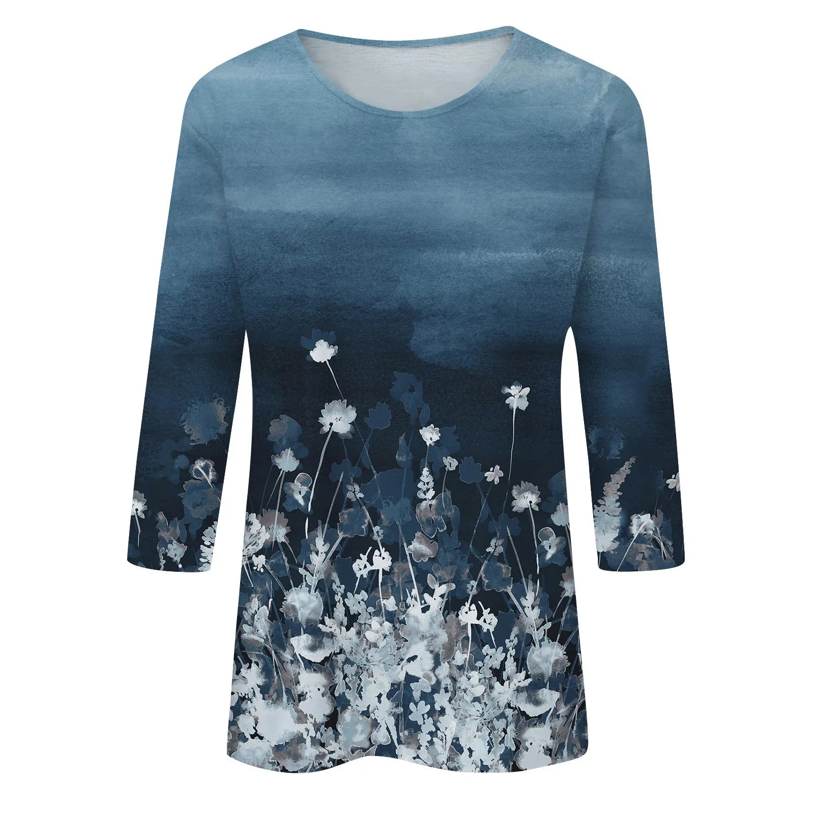 Why you want this "Casual 3/4 Sleeve Floral Print Galore Pullover Top":