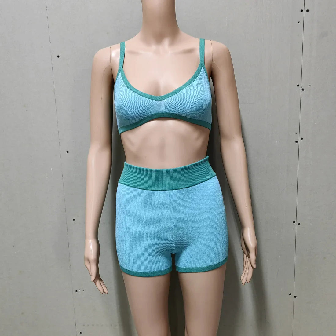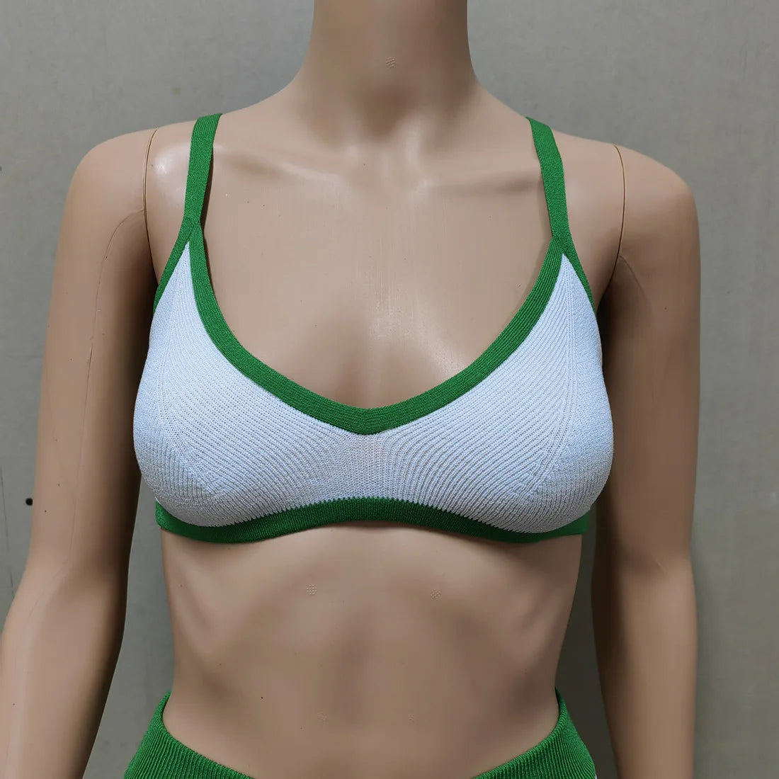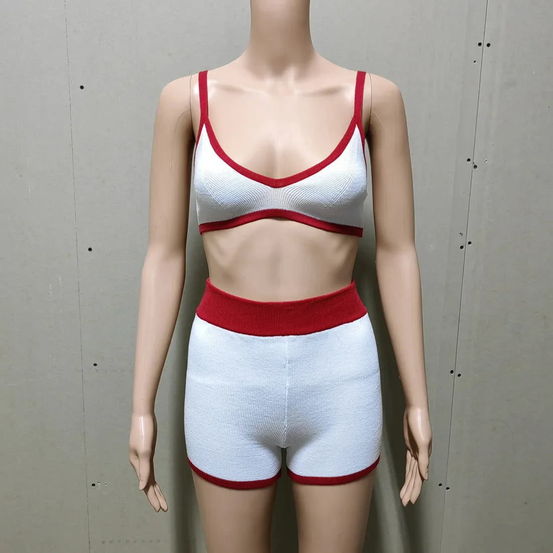 Contrast Knitting 2 Piece Beachwear - Triangle Bra & Boyshorts