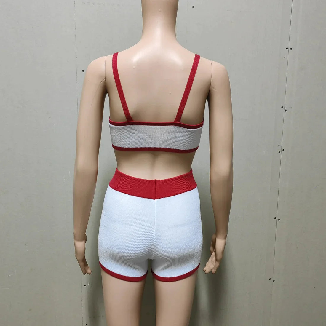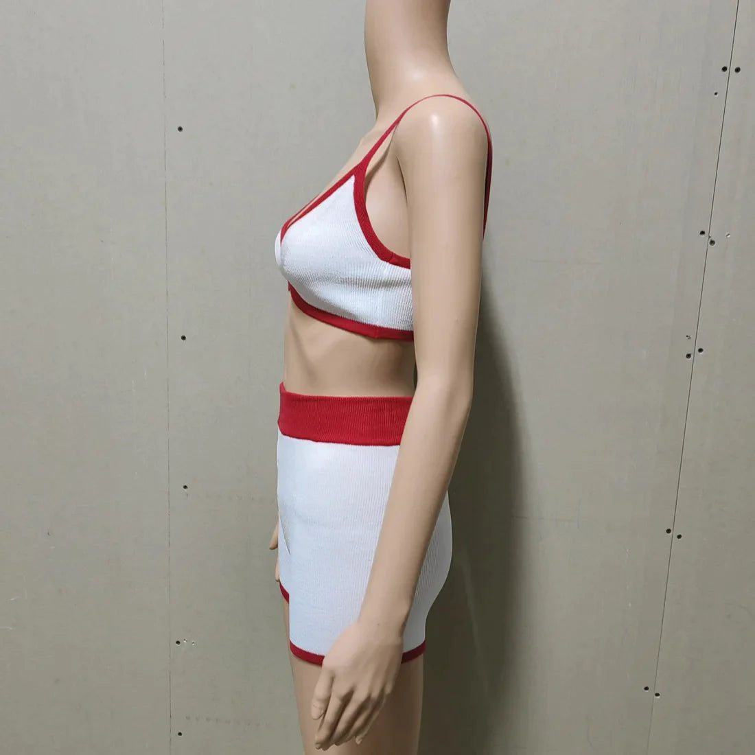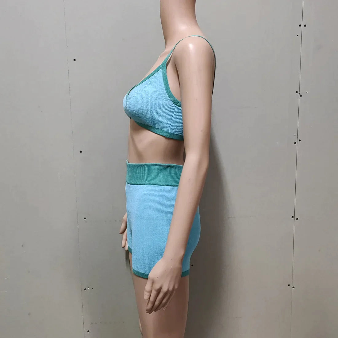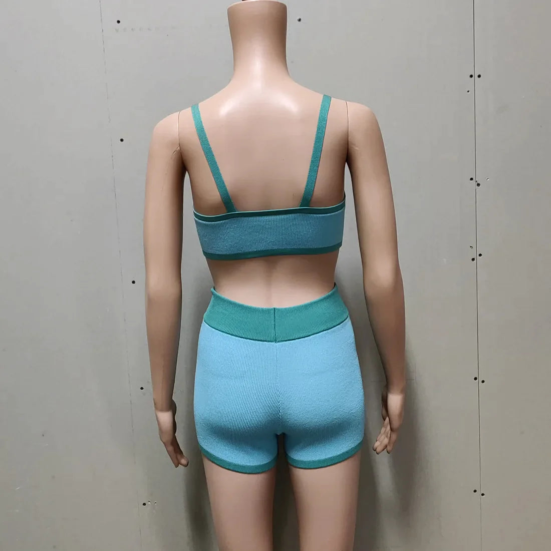 Contrast Knitting 2 Piece Beachwear - Triangle Bra & Boyshorts