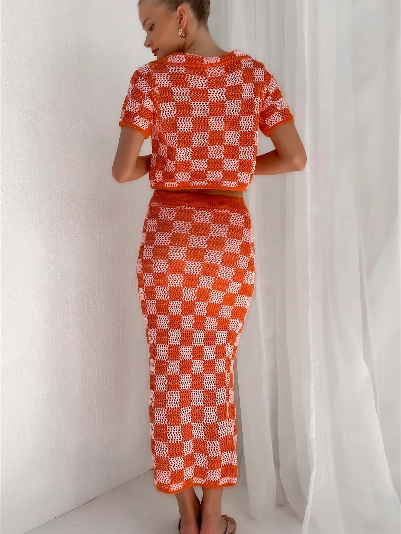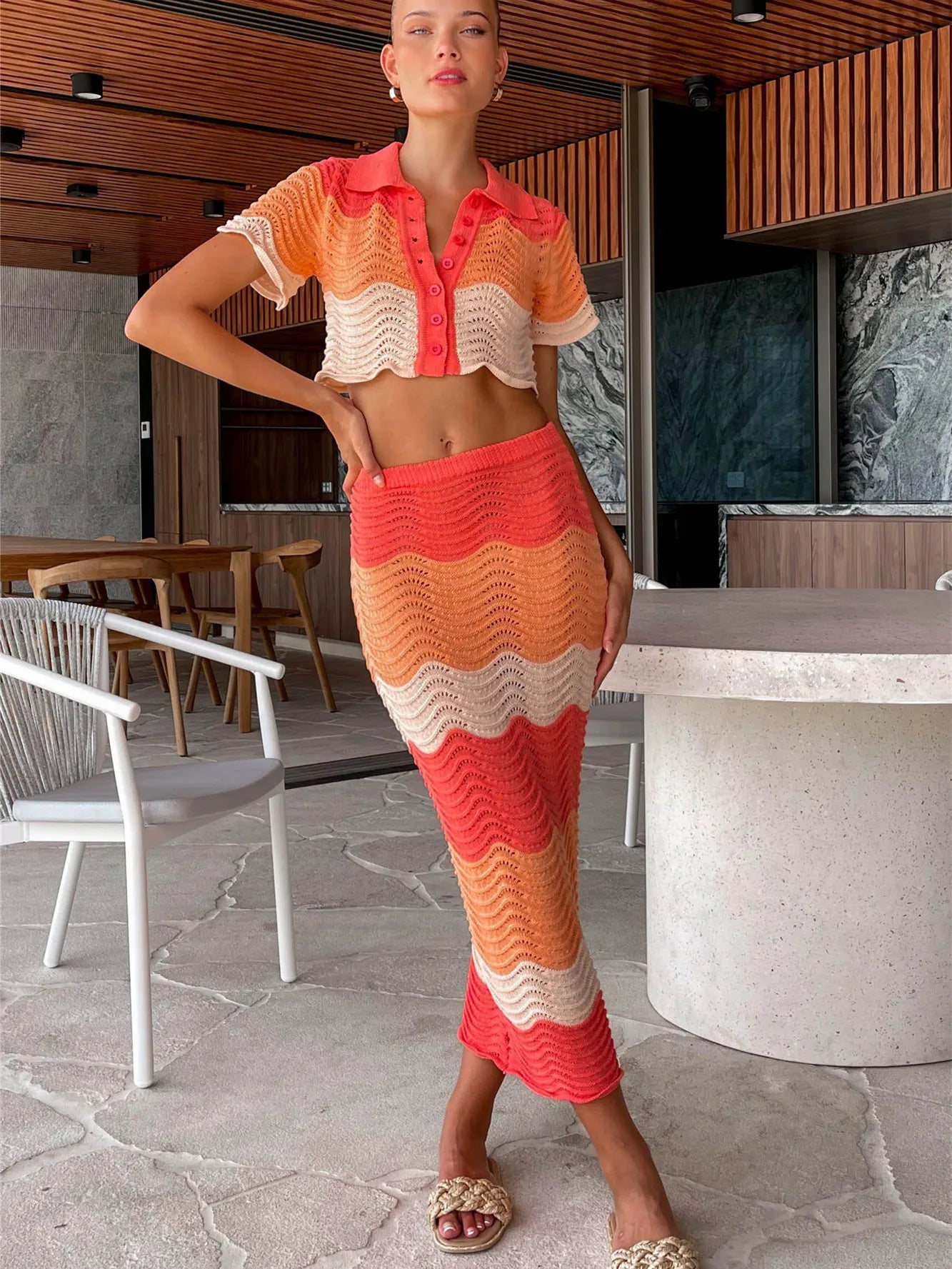 Summer Days in Cropped Knit Shirt & Midi Skirt