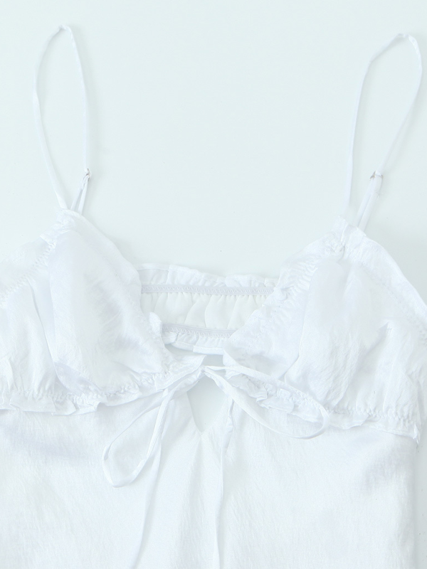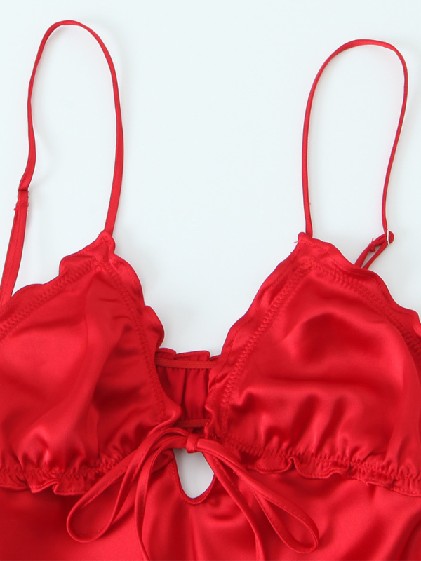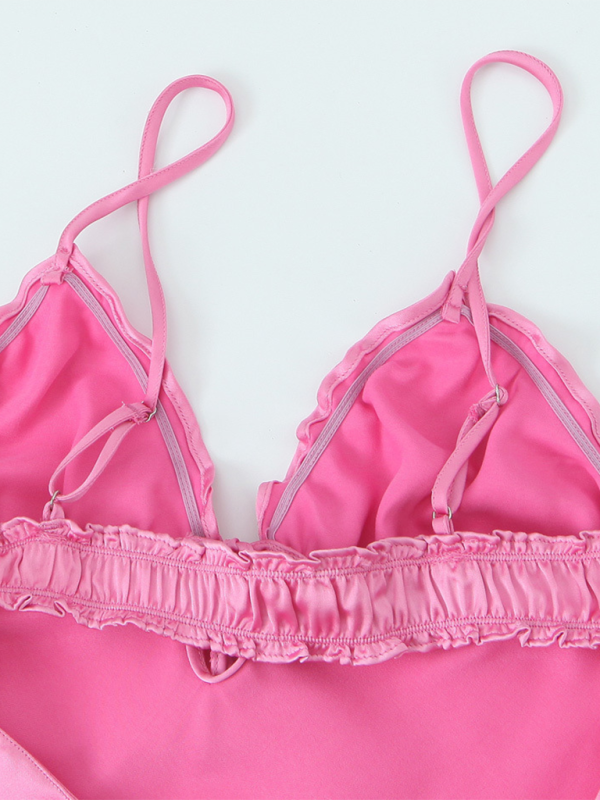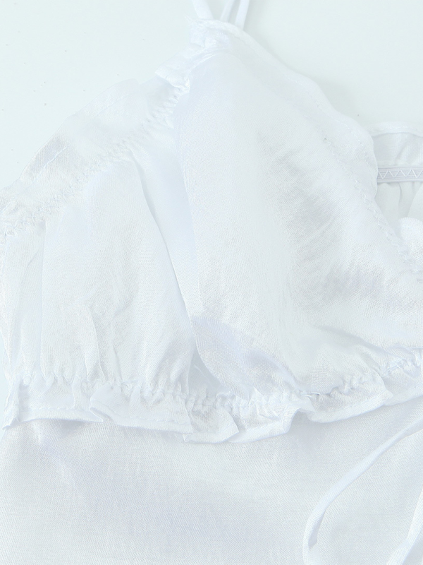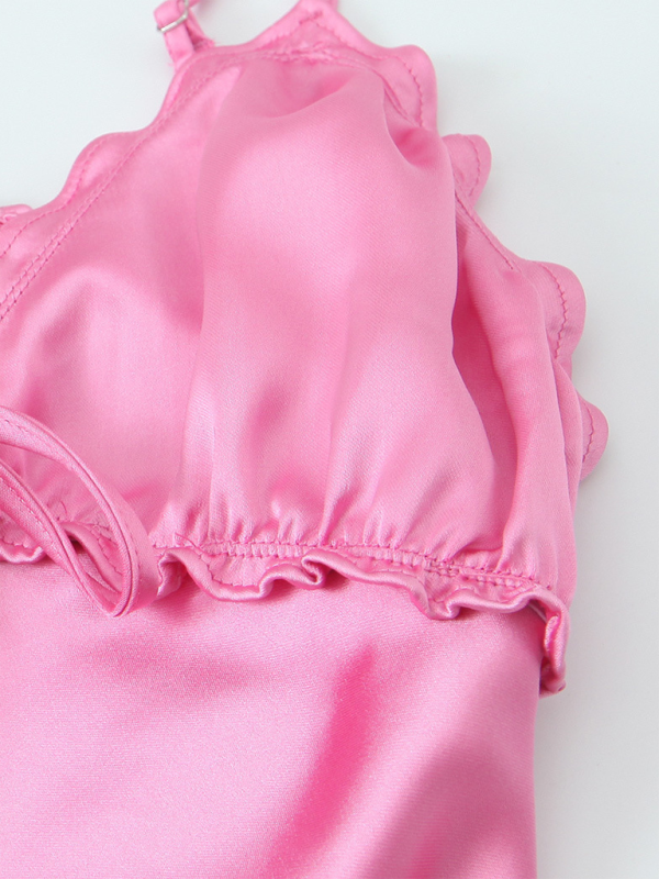 • Design Details: Ruched bust with frilled straps adding a playful twist