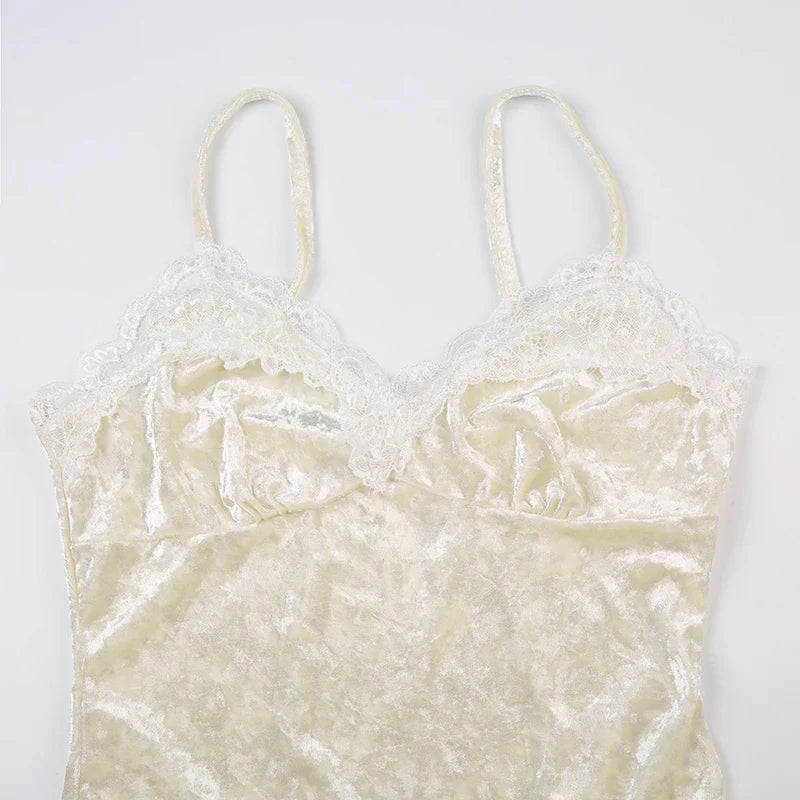 Velvet Cami with Lace Trim - Women's Velour Top