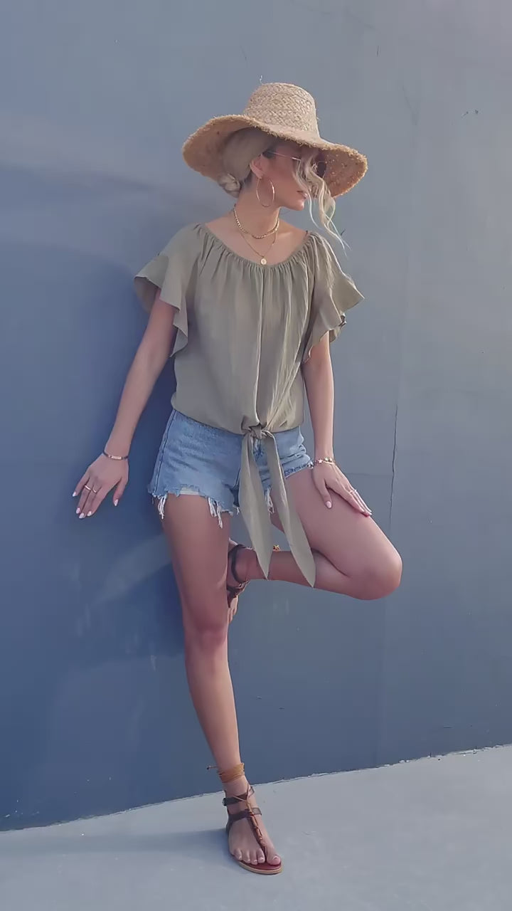 Draped Boat Neck Blouse | Summer Flowy Top with Short Sleeves