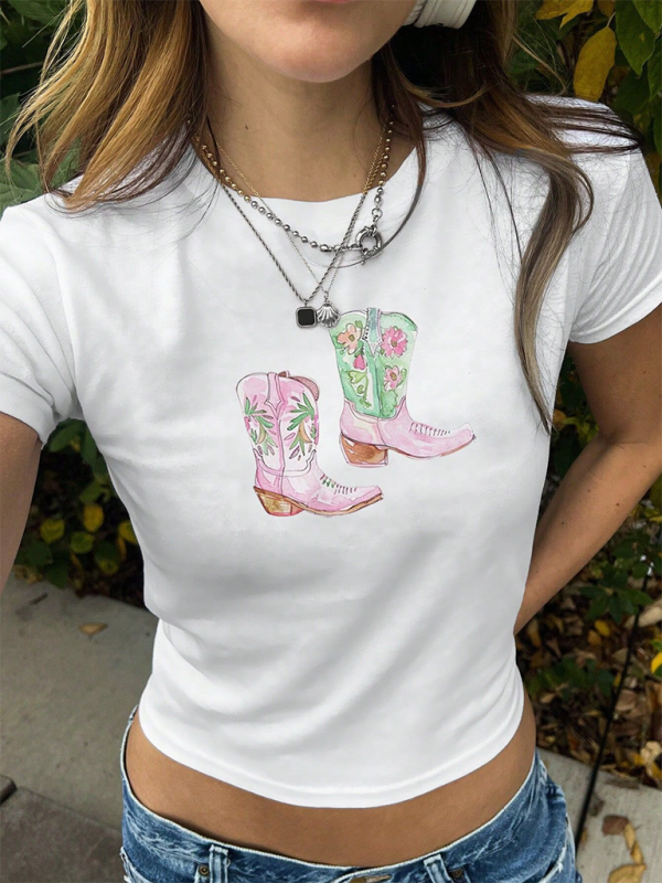 Floral Cowboy Boots Tee - Graphic T-Shirt