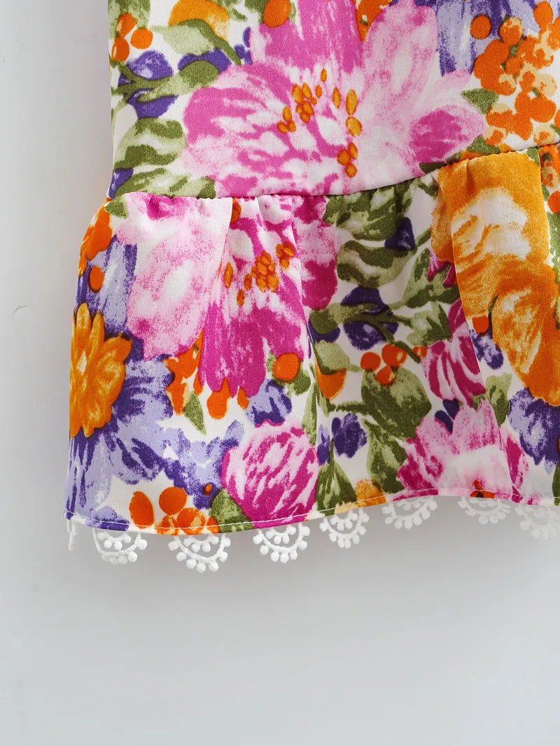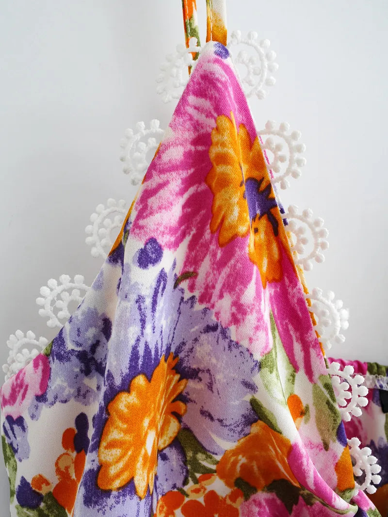 Floral A-Line Knot Ruffle Cami Mini Dress