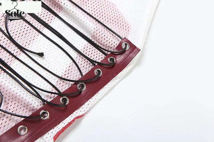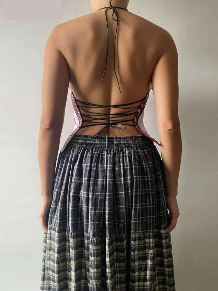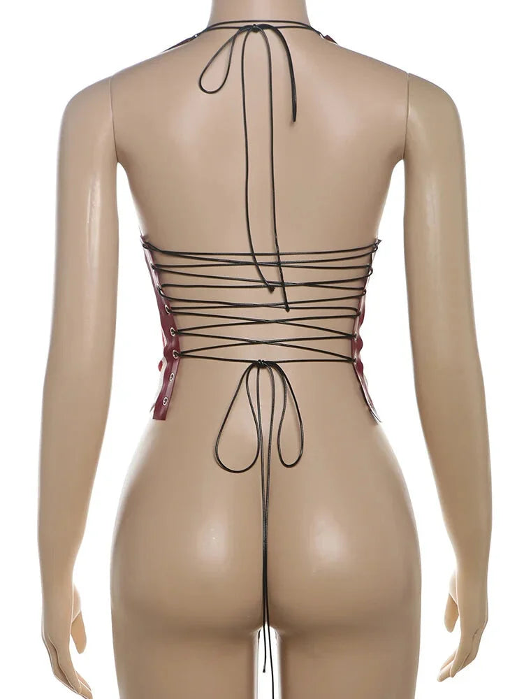 Crafted from a blend of polyester and spandex, this top offers high elasticity for a comfortable and flattering slim fit. The football collage print adds a fun and playful touch, while the lace-up back and backless halter design add a trendy twist.