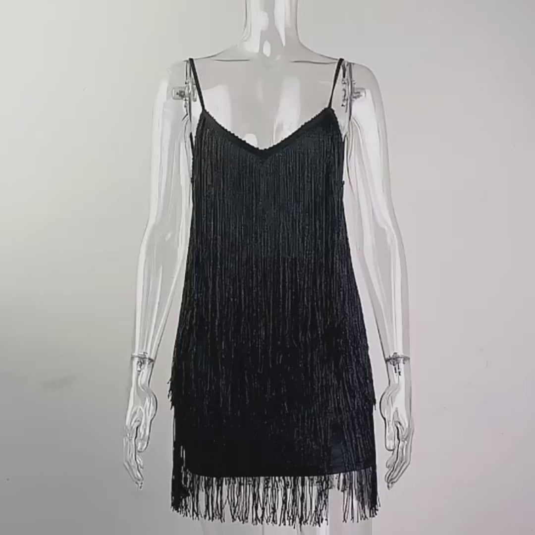 Fringed Sequin Mini Dress - Sparkling Backless Flapper Dress