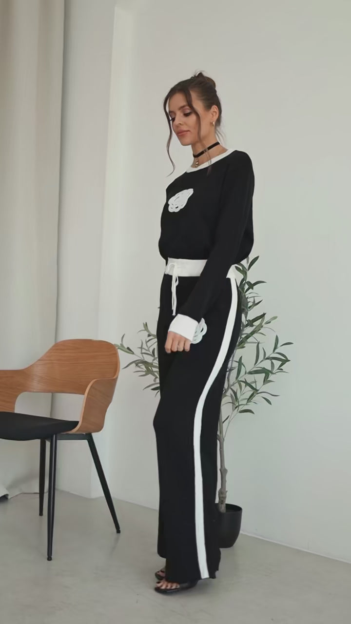 Knitted Matching Set – Palazzos & Sweater Trim Accents