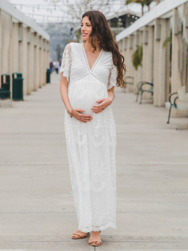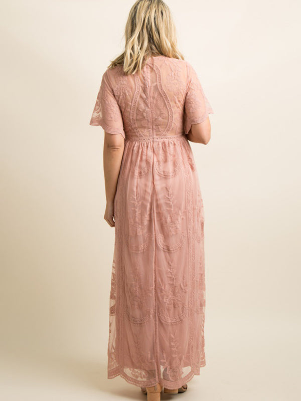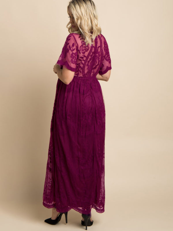 👗 Elegant Maternity Overlay Lace Maxi Dress 👗