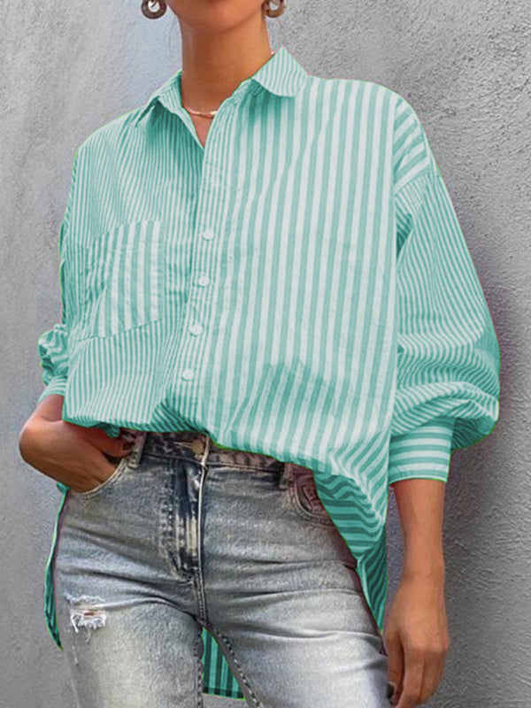👚 Women Stripe Oversized Loose Shirt with Lantern Sleeves 👚