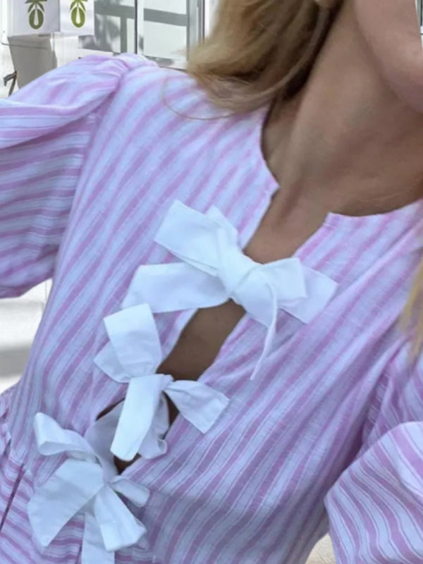 1. Stylish Design: Featuring a chic Bow Tie Crew Neck and trendy Stripe pattern.