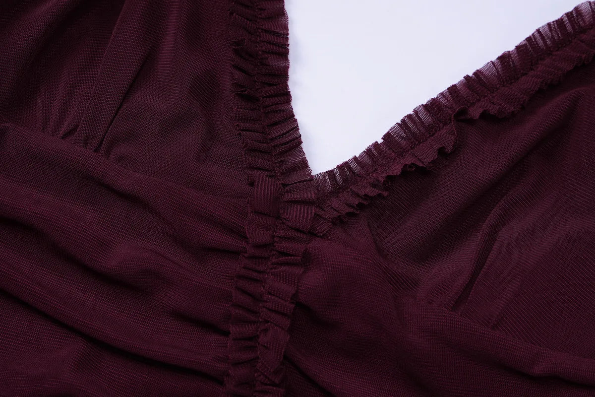 Step into the spotlight with our Ruched Party Dress with Frilled Hem! Designed to accentuate your curves with its form-fitting ruched waist and playful frilled hem, this dress is your ticket to becoming the life of the party. Ready to dazzle and set trends? Don't wait, make it yours today and let your fashion shine as bright as your evening! ๐โจ
