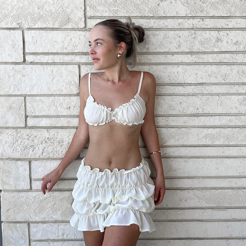 Summer Ruffle Magic: Beachwear Mini Skirt & Cami Set