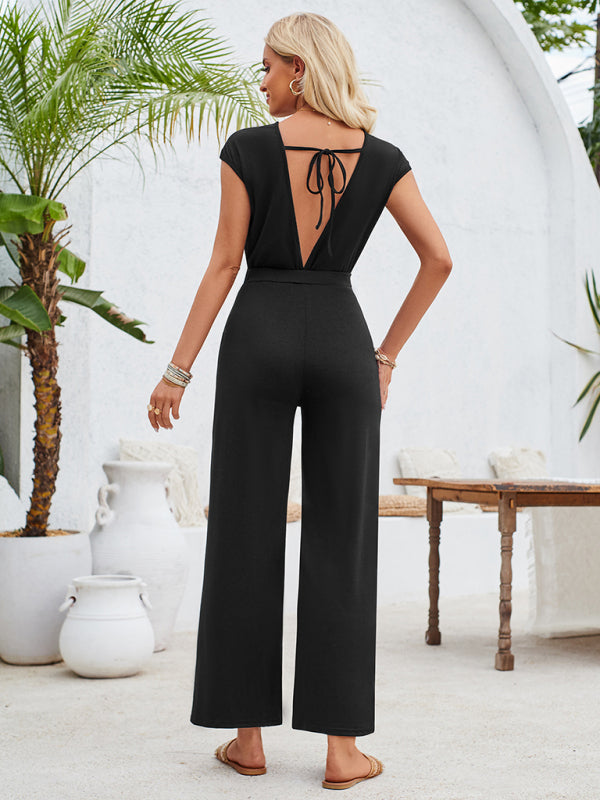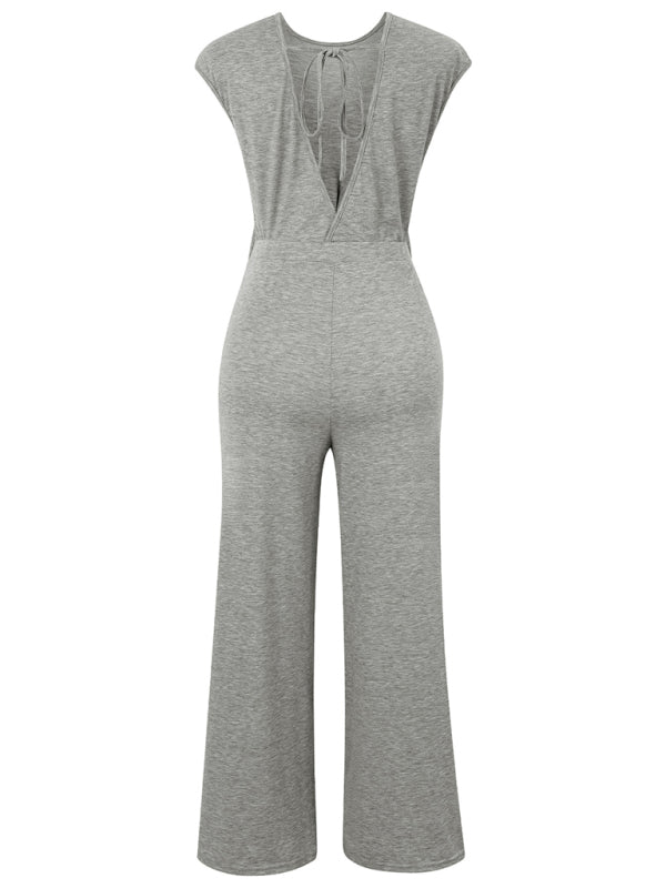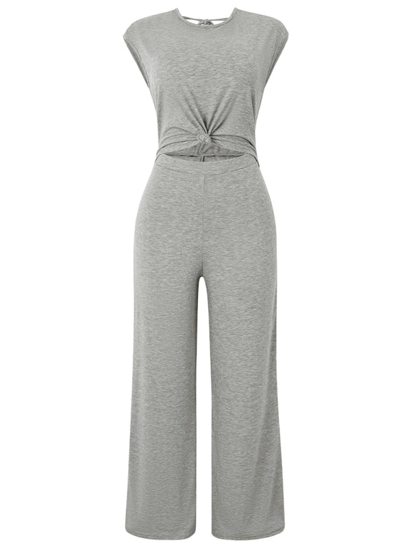 Solid Knot Cutout Jumpsuit - Women's Straight-Leg Full-Length Playsuit